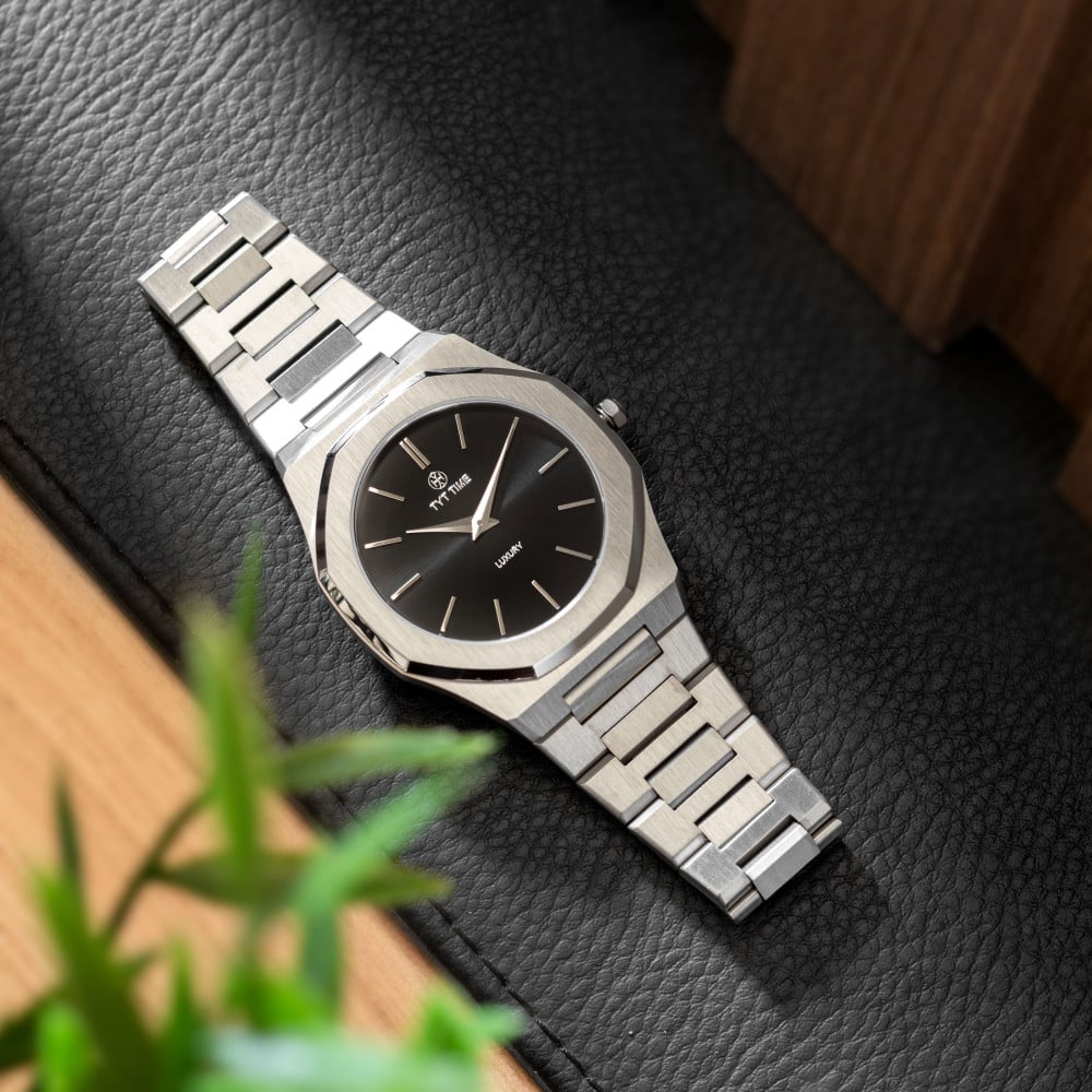 حين نتحدث عن السحر و الجمال يجب أن نتحدث عن ساعة يد كلاسيكية تي واي تي فضي بمينا لون اسود، حيث تتمتع بتصميم كلاسيكي فاخر، لذلك فهي الحل الامثل لجميع للمناسبات.