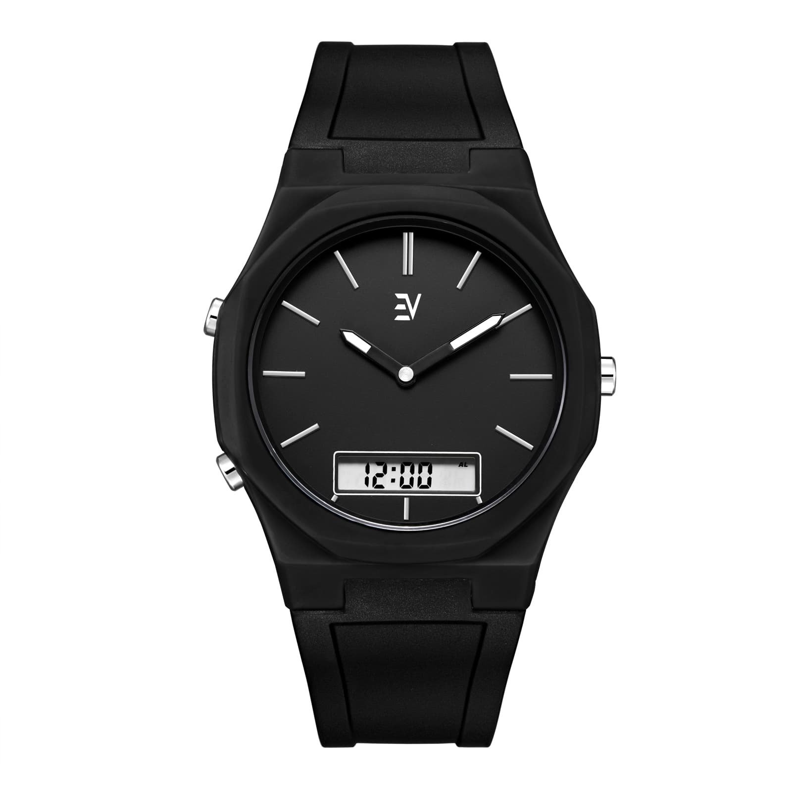 ساعة يد ايفرد رياضية بسوار مطاطي وميناء رقمي وعقارب
