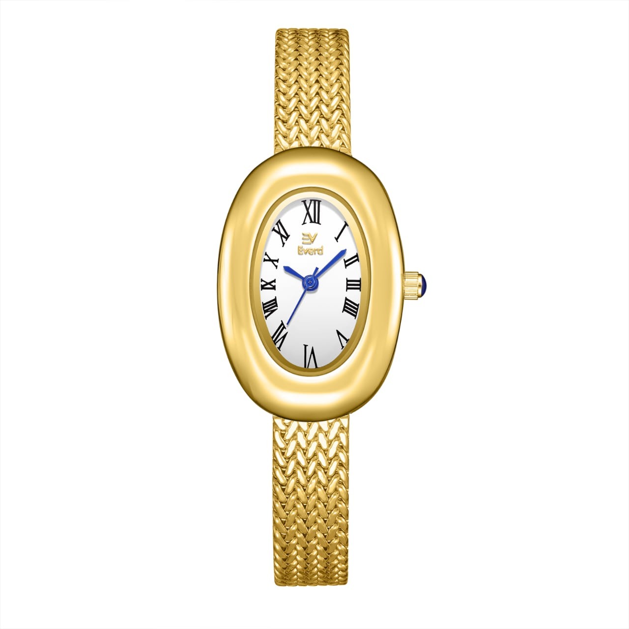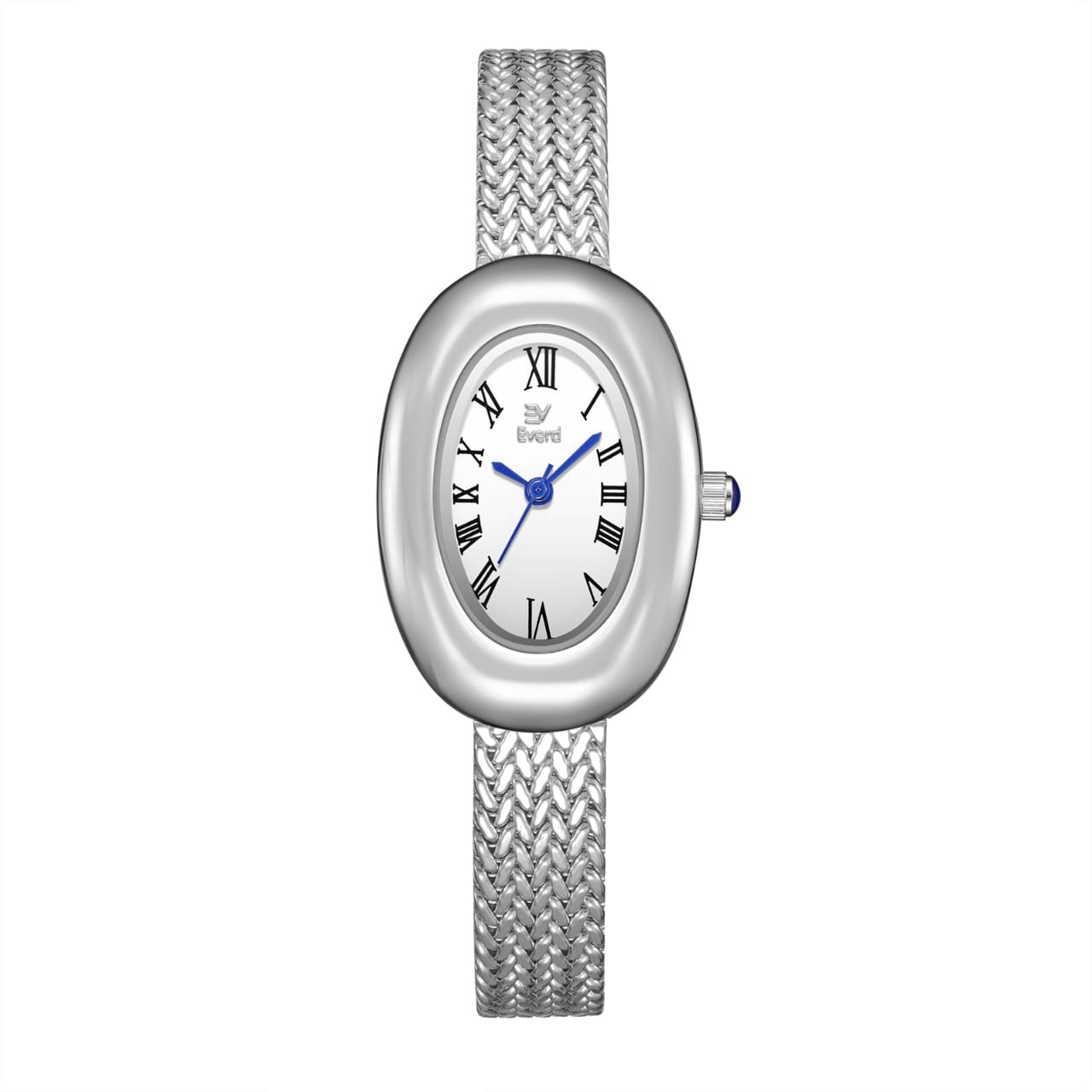 ساعة ايفرد نسائية بيضاوية سوار شبكي وواجهة أرقام رومانية