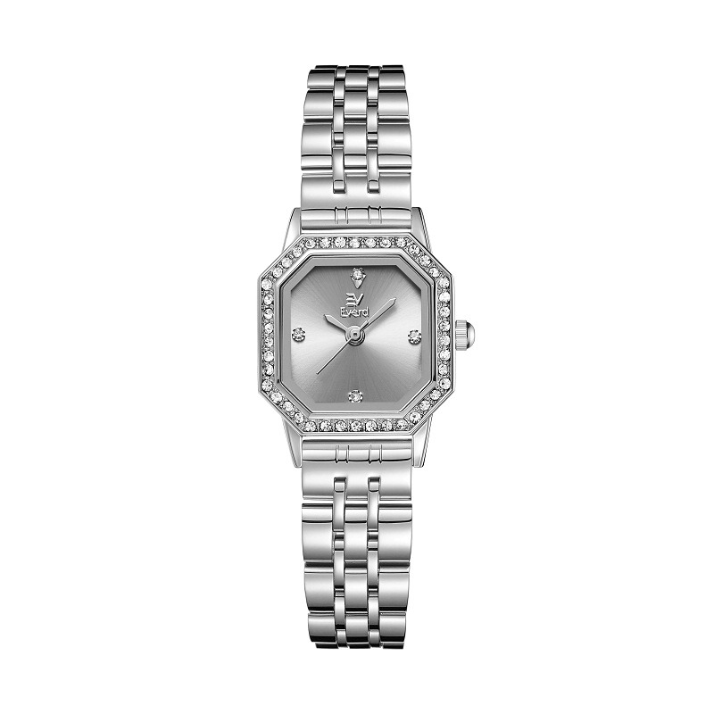 ساعة ايفرد نسائية مربعة فضي و ذهبي وجهة سداسية مرصعة